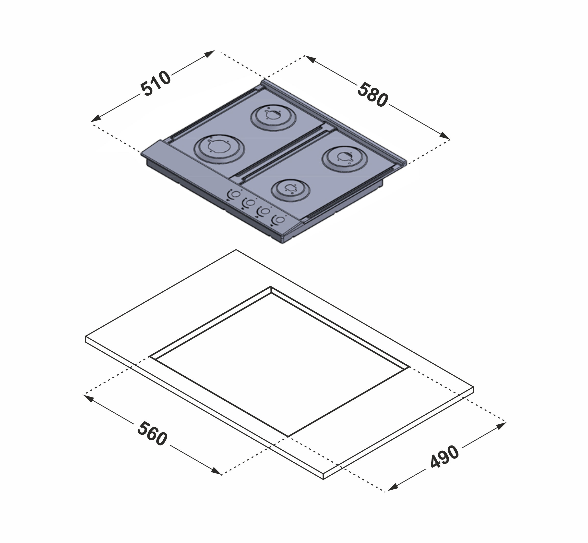 60 cm built- in gas hob
